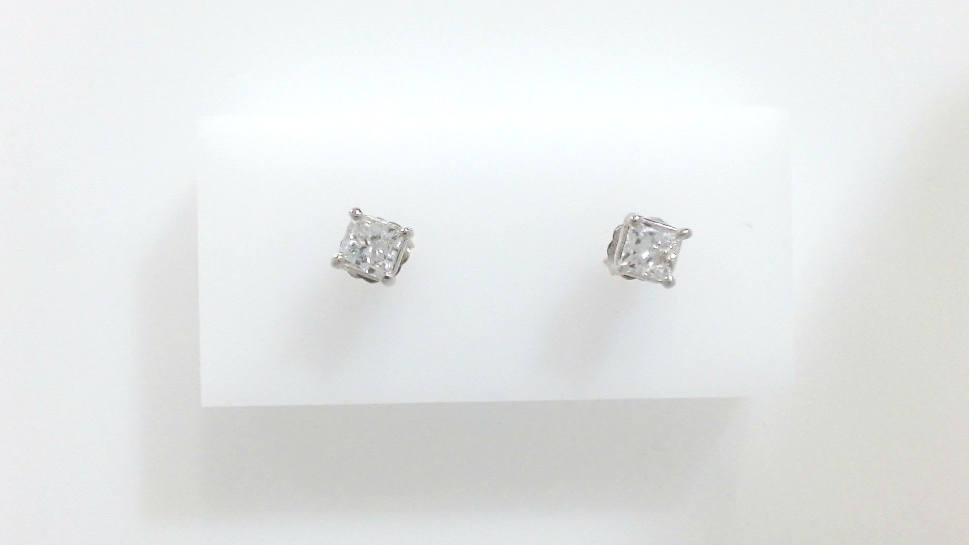 Lady's White 14 Karat Stud Earrings With 2 = 1.00Tw Princess Lab Diamonds
