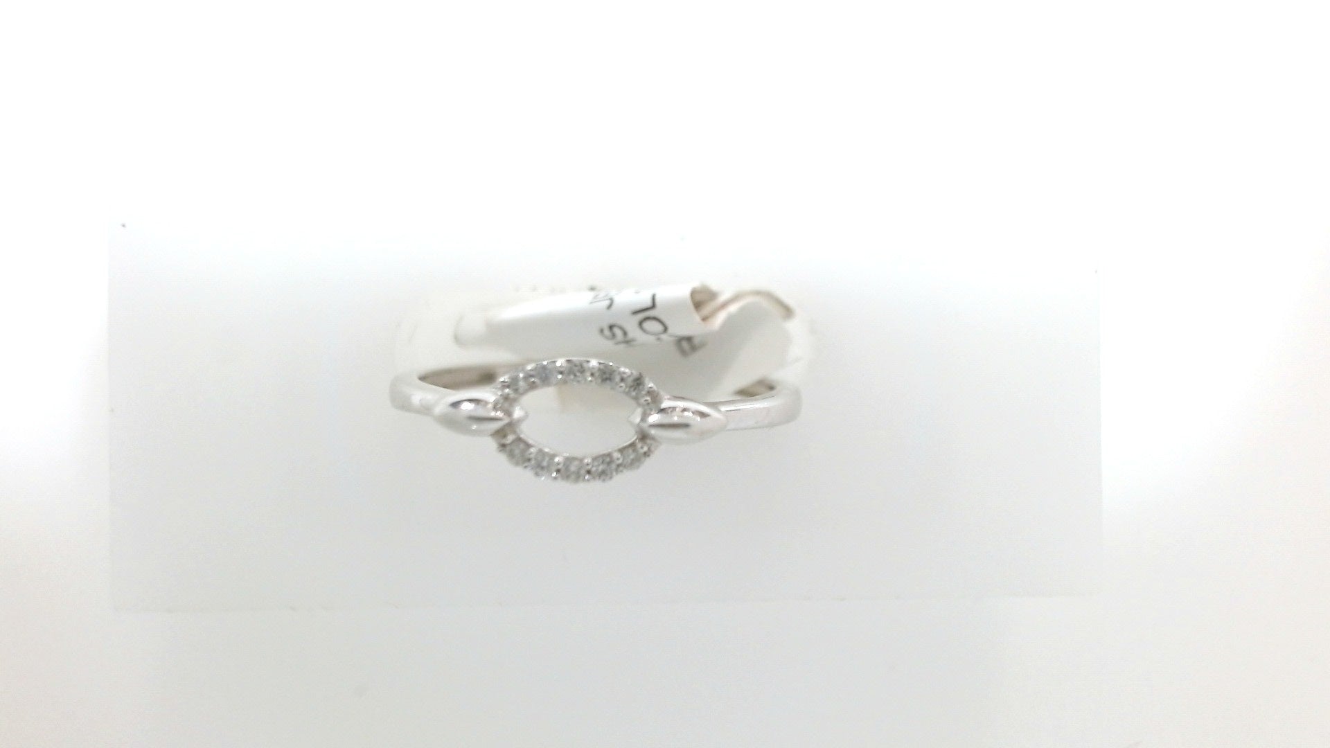 Lady's White 10 Karat Open Oval Ring Size 7 With One = 0.05Ct Round Diamond