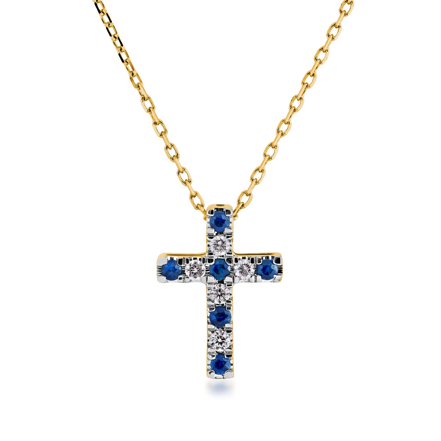 Lady's Yellow 14 Karat Sapp/Dia .10Cttw Cross Pendant
