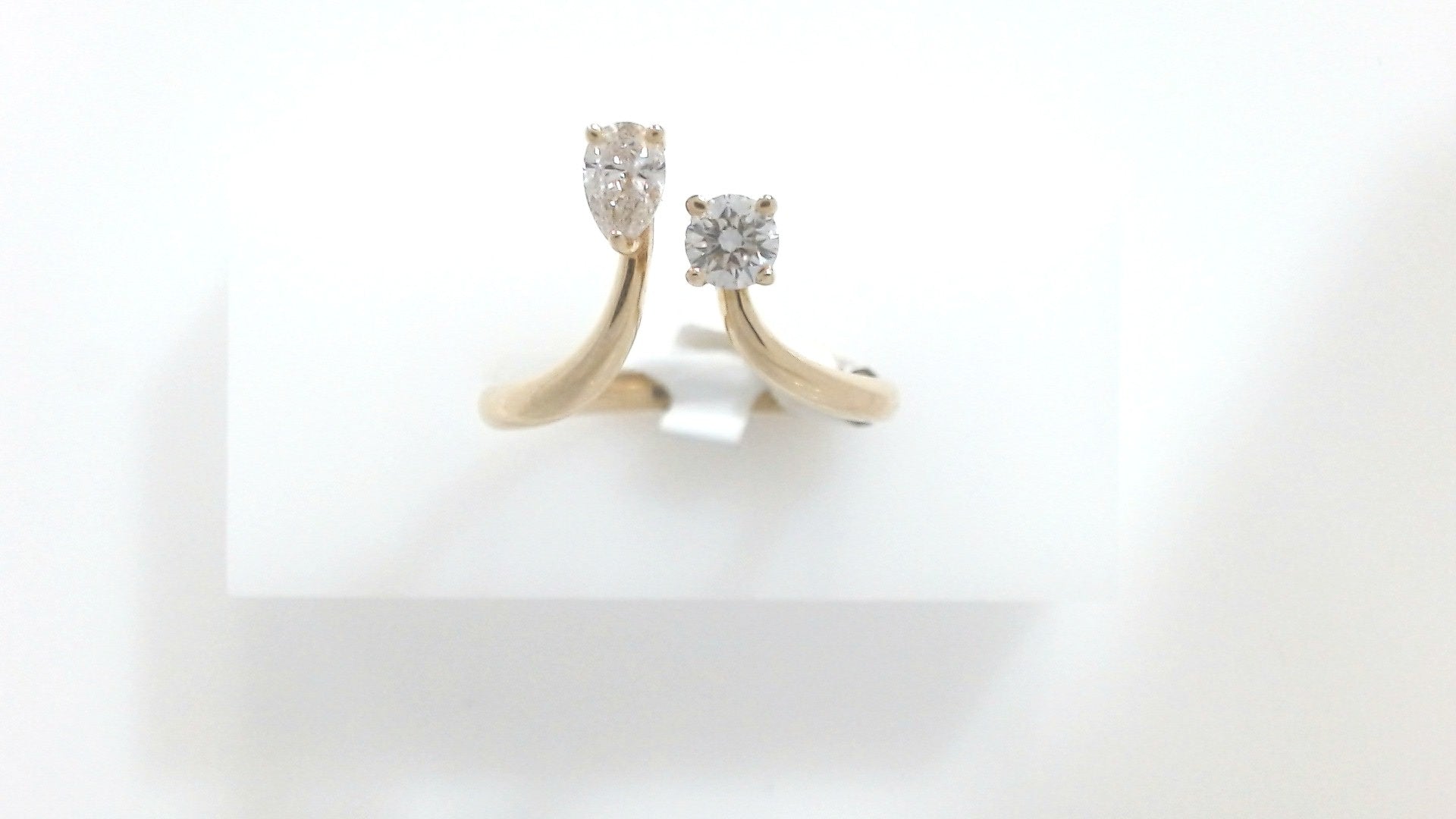 Lady's Yellow 14 Karat Open Band Size 7 With 2 = 0.50Tw Round Diamonds