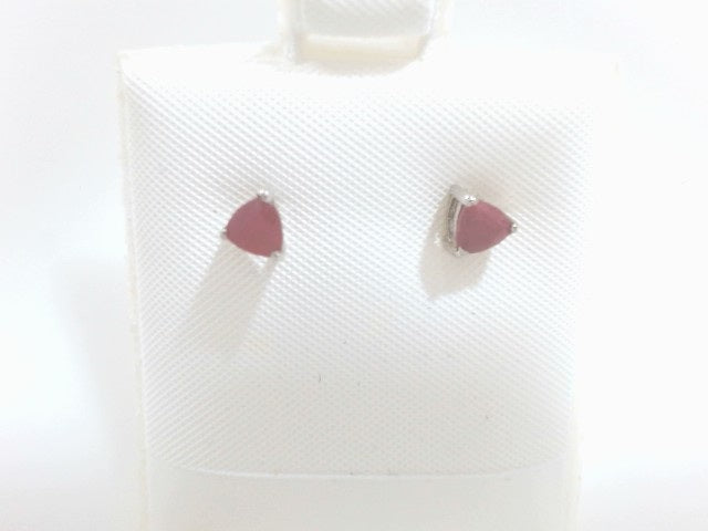 Lady's White Ss Trillion Gen Ruby Stud Earrings
