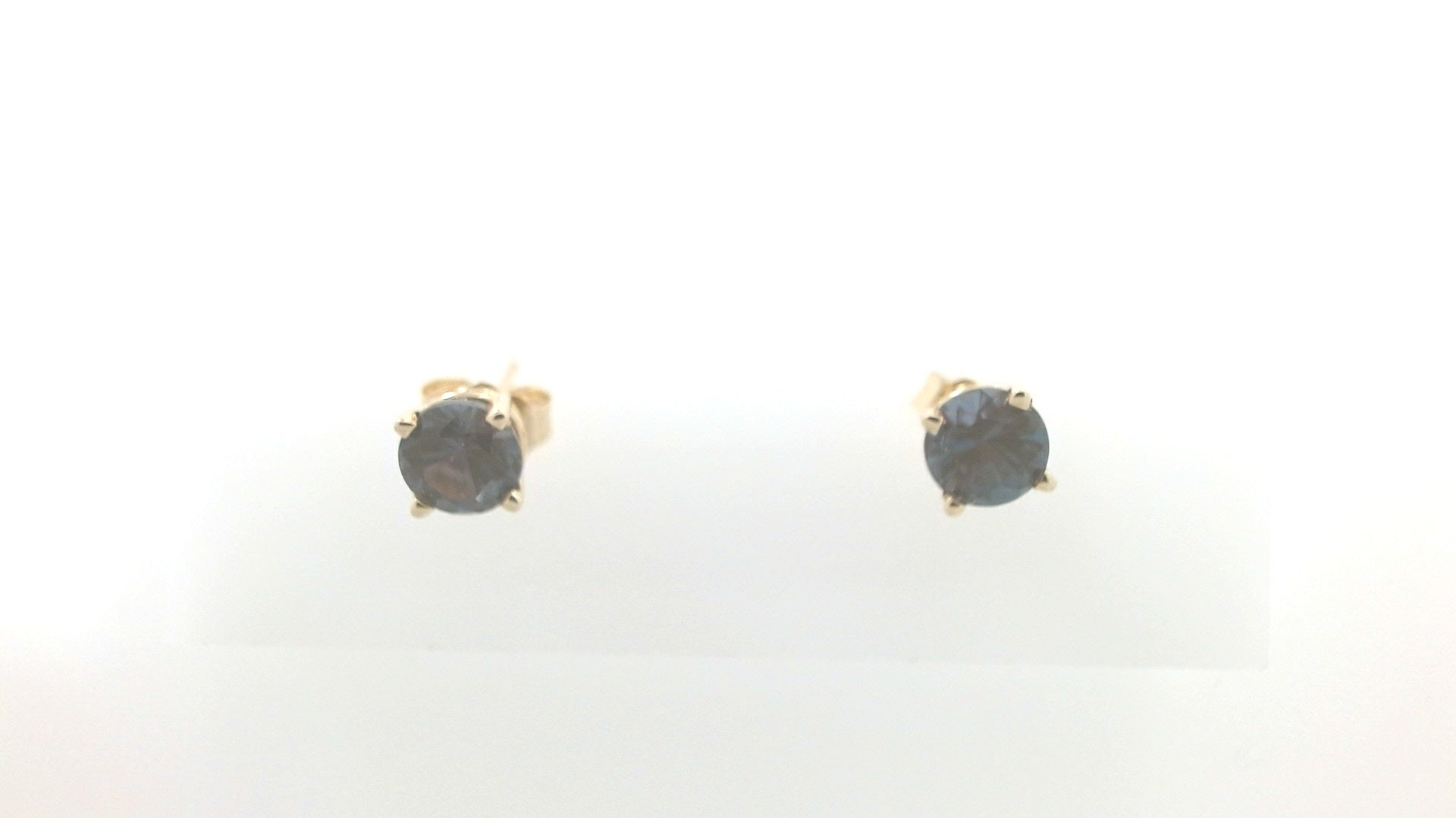 Lady's Yellow 14 Karat Earrings With 2 = Round Created Alexandrites
