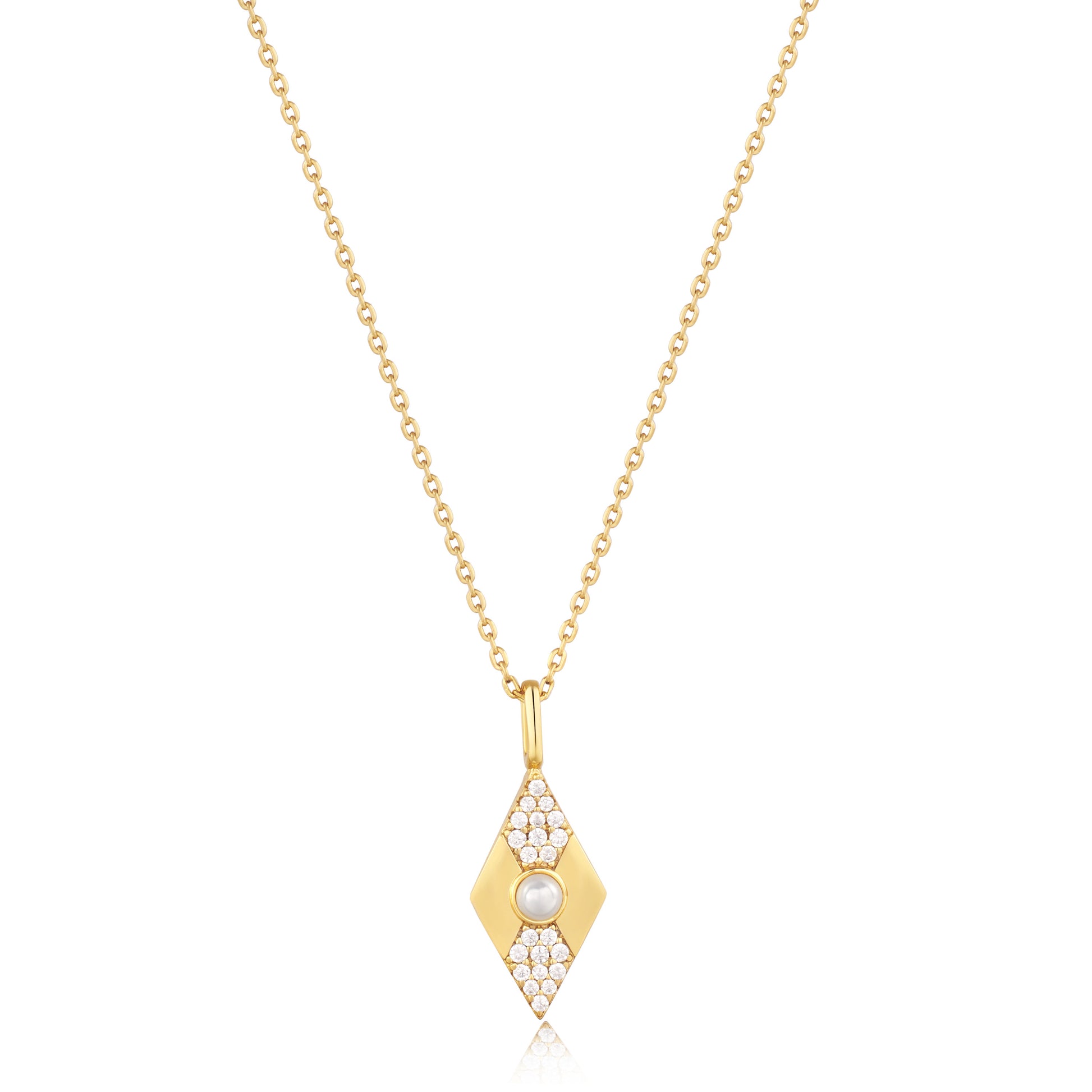 Gold Pearl Geometric Pendant Necklace