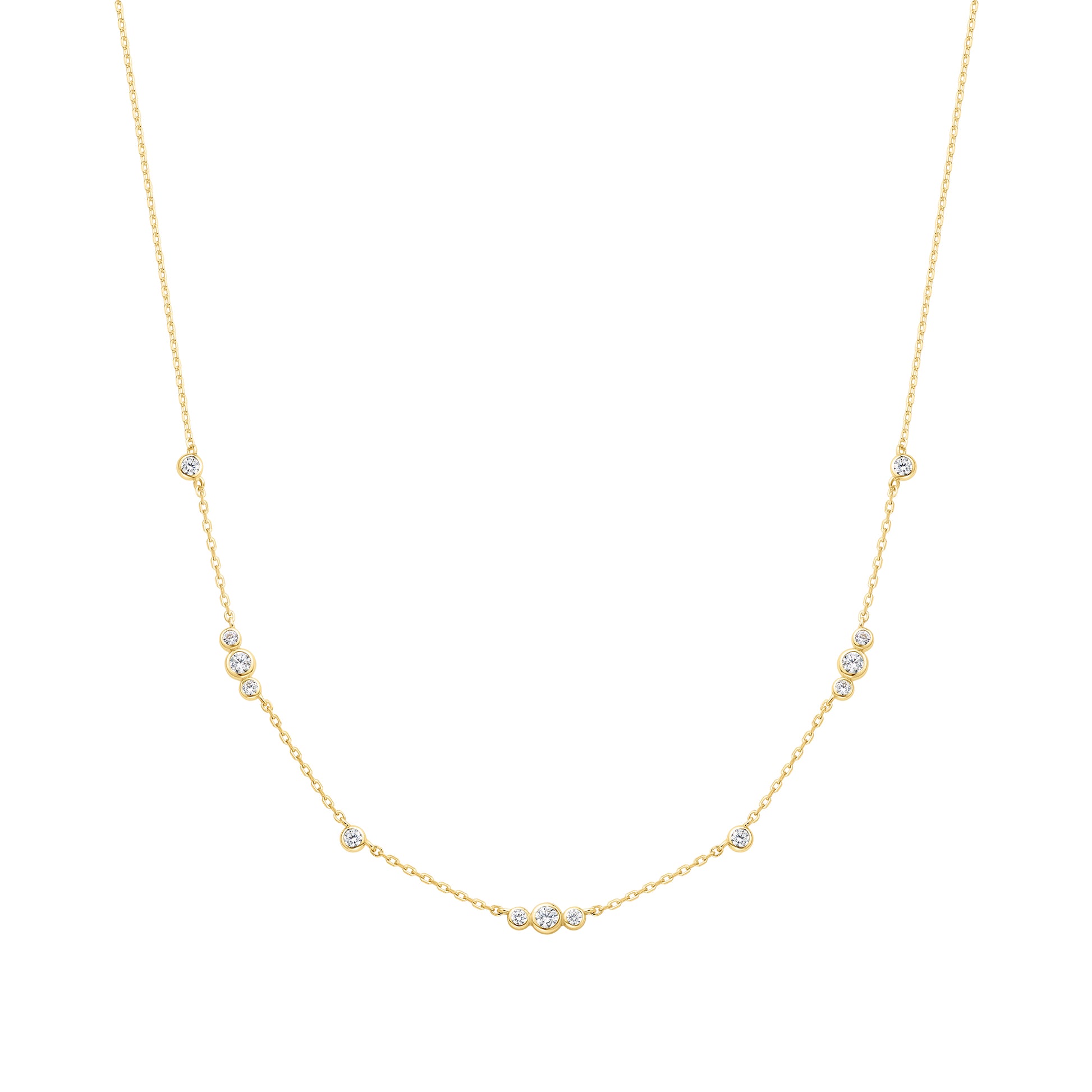 Gold Sparkling Bezel Cubic Zirconia Station Necklace