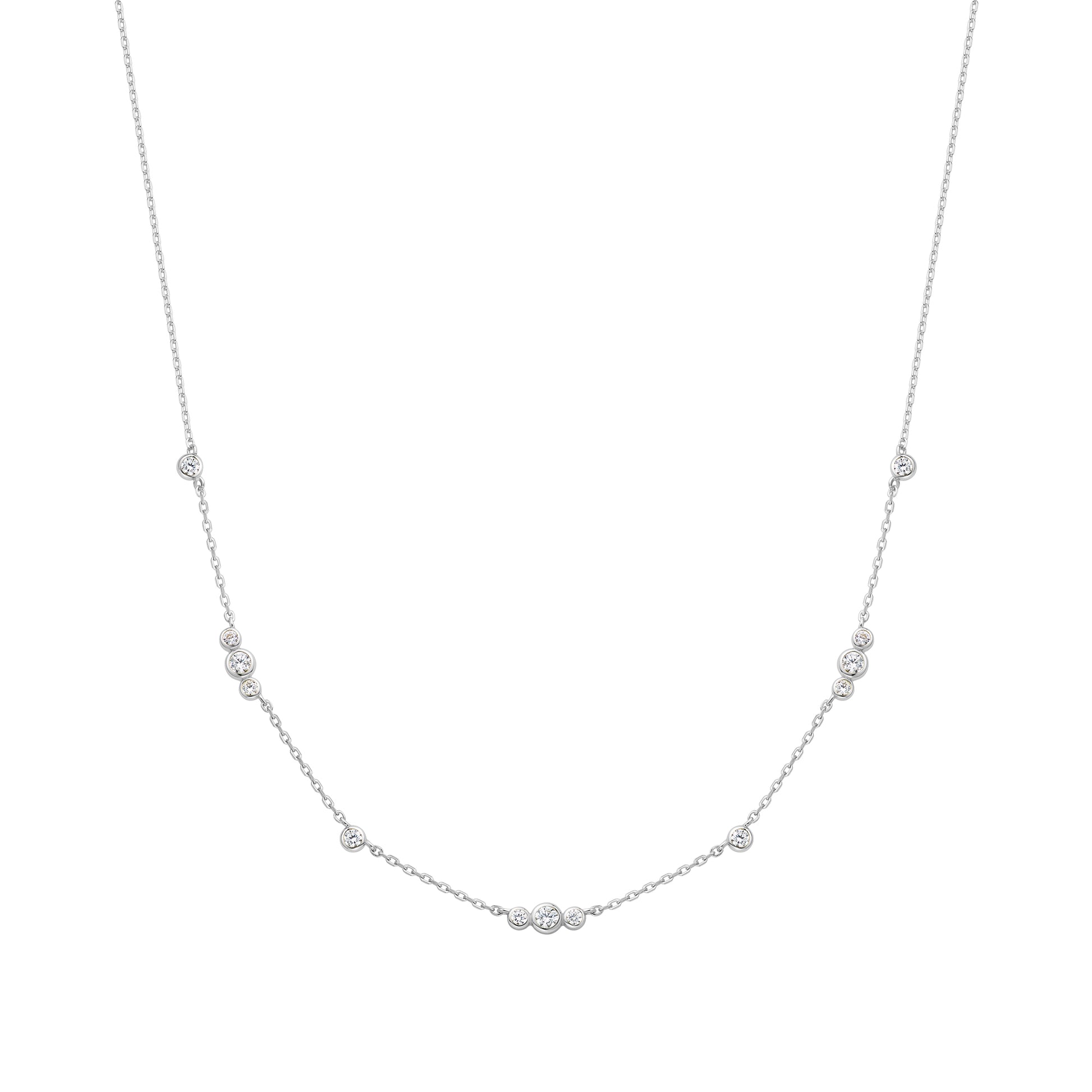 Silver Sparkling Bezel Cubic Zirconia Station Necklace